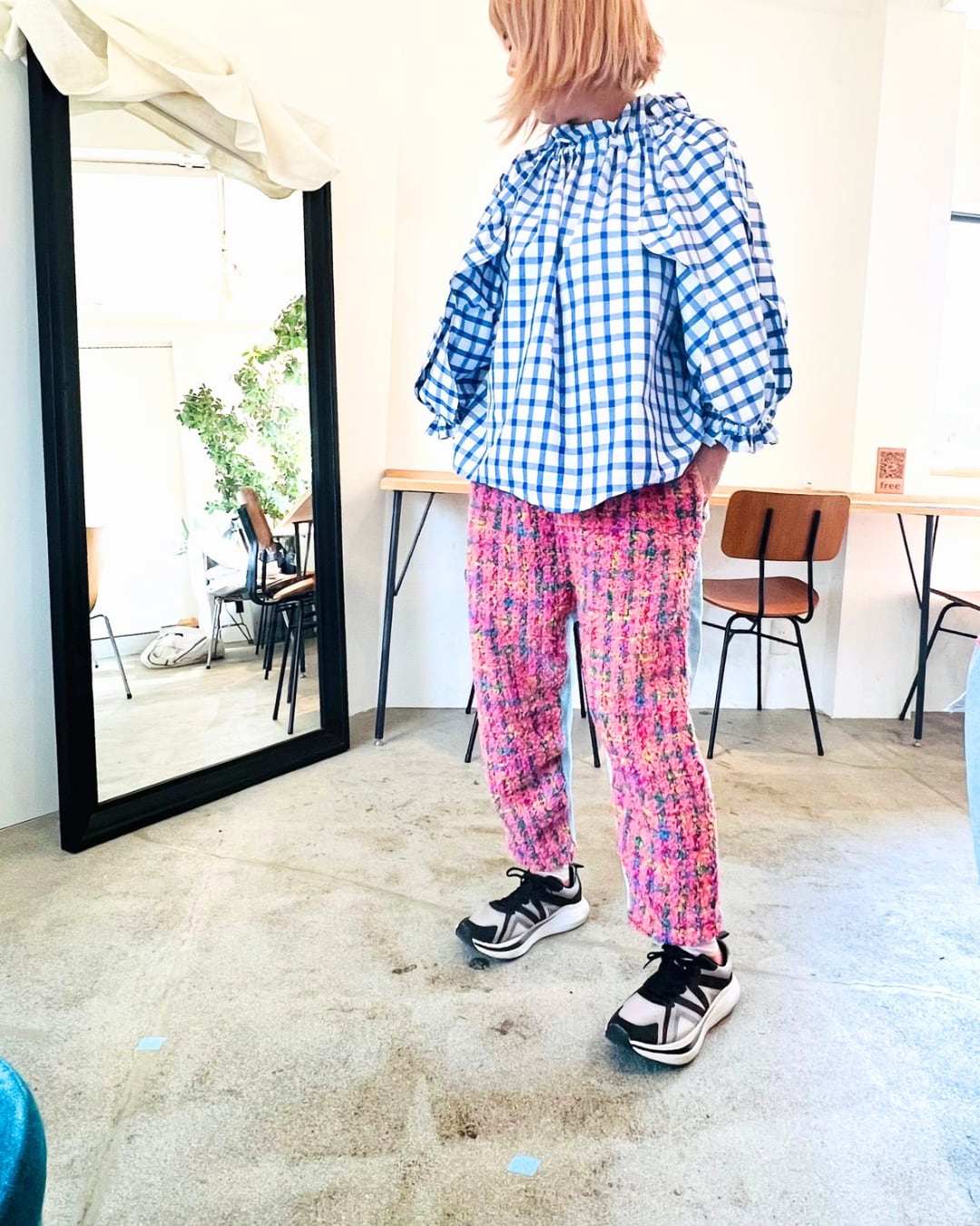 #チューリップパンツ #ピンクツイード #ハンドメイド #おしゃれ #ファッション #カジュアル #大人可愛い #コーディネート #個性的
