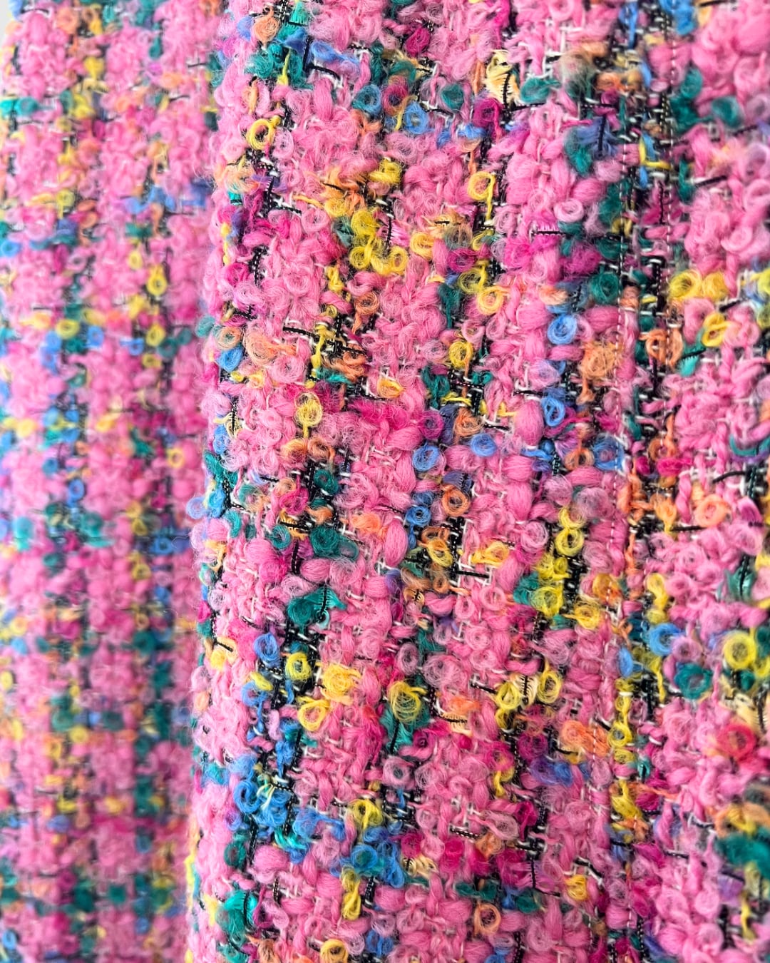 華やかなピンクツイードで仕立てたチューリップパンツが登場!優しい色合いと心地よい素材感が、アクセントを与えます。女性らしいラインを出しつつも、リラックスしたはき心地を意識してつくりました。