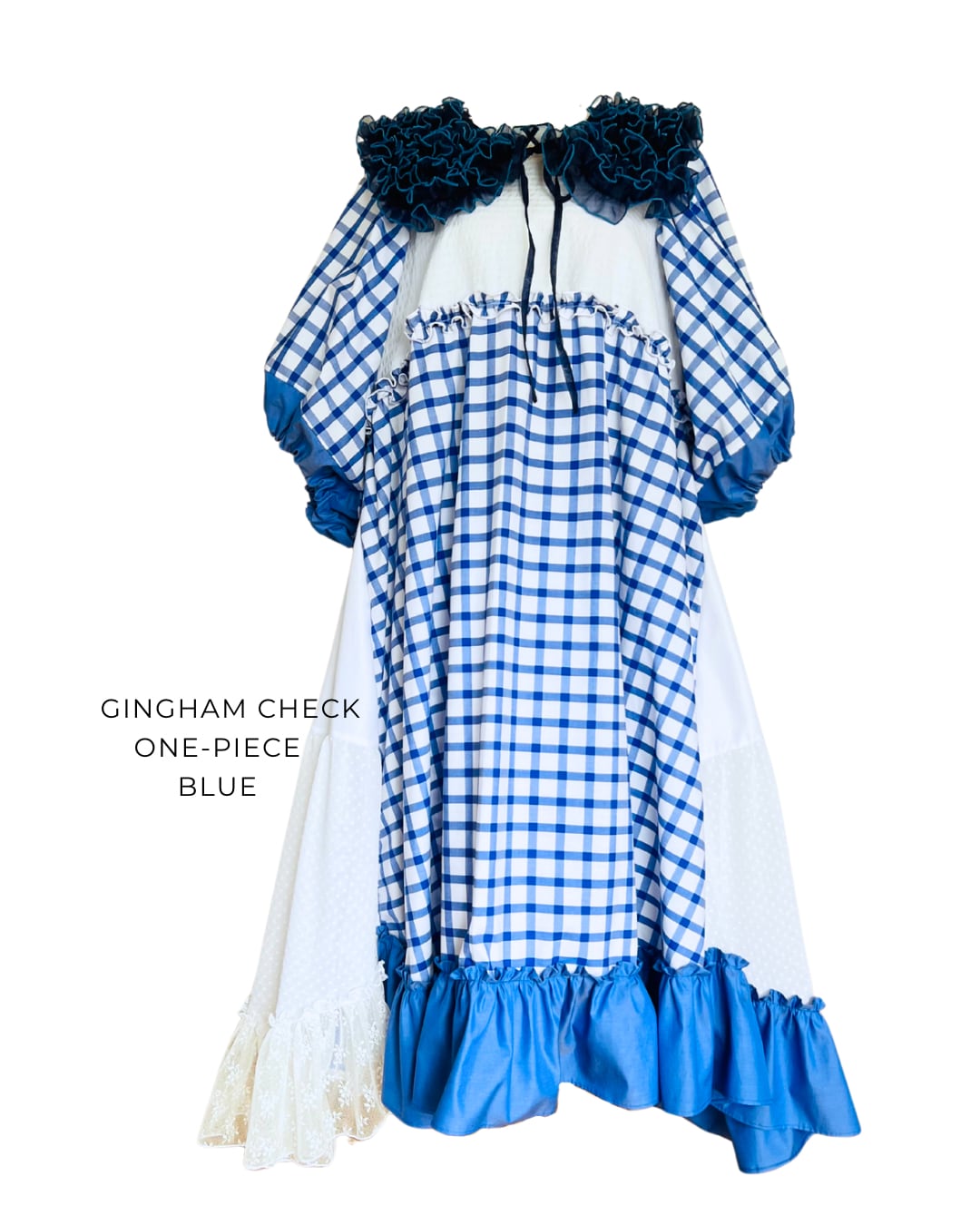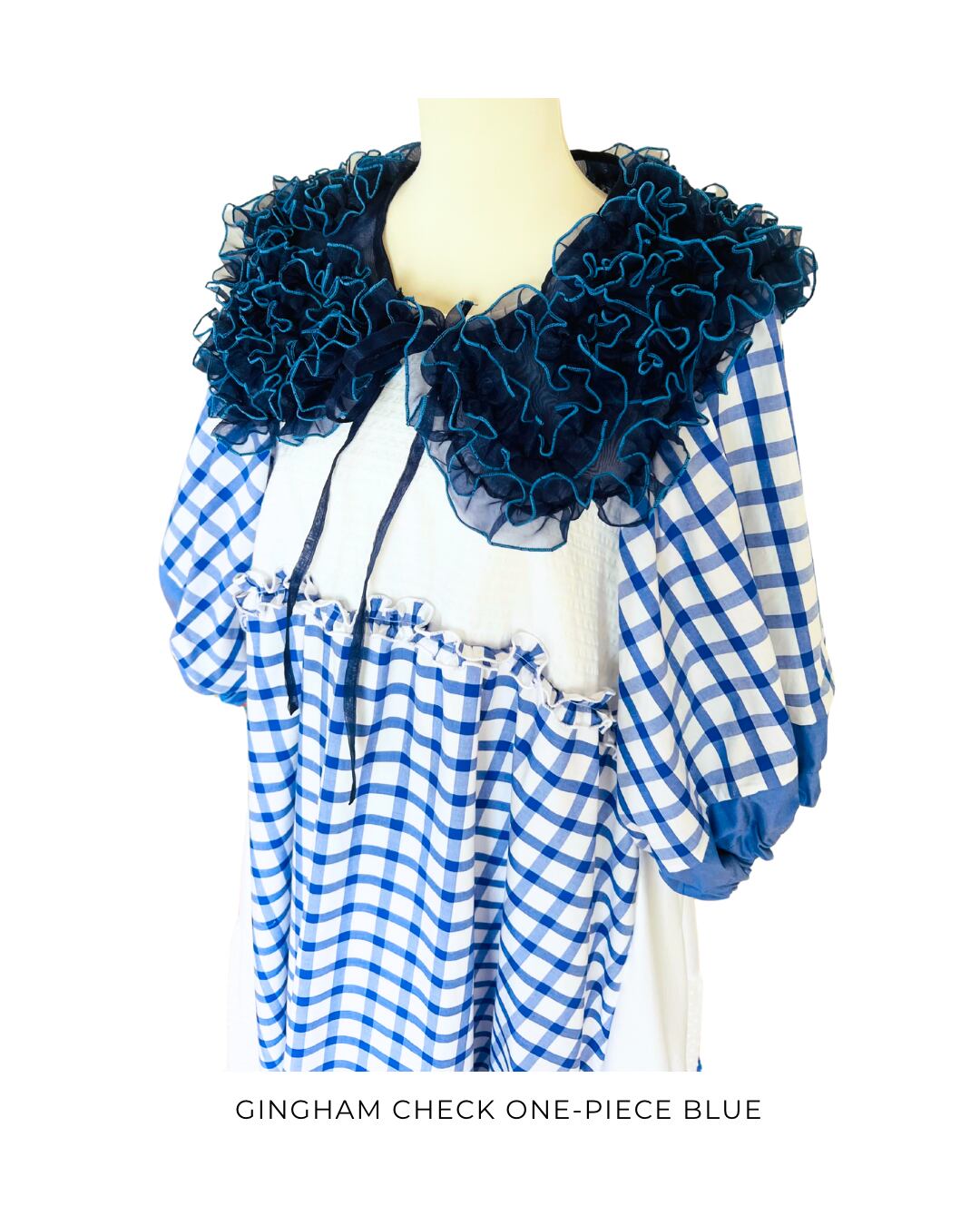 gingham check one-piece / blue