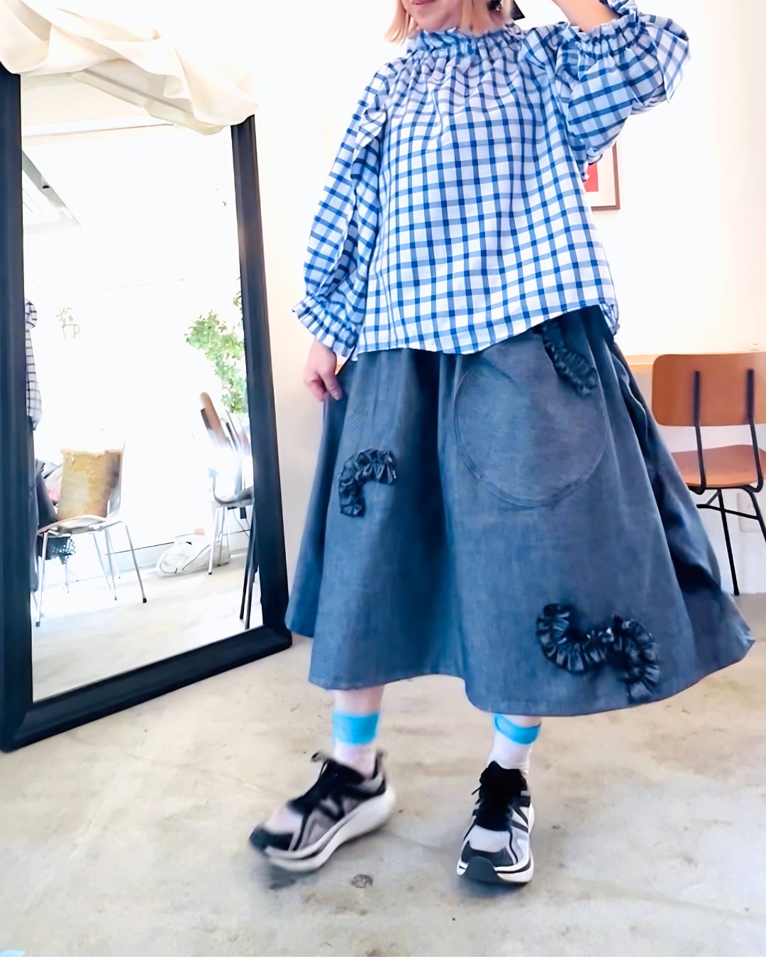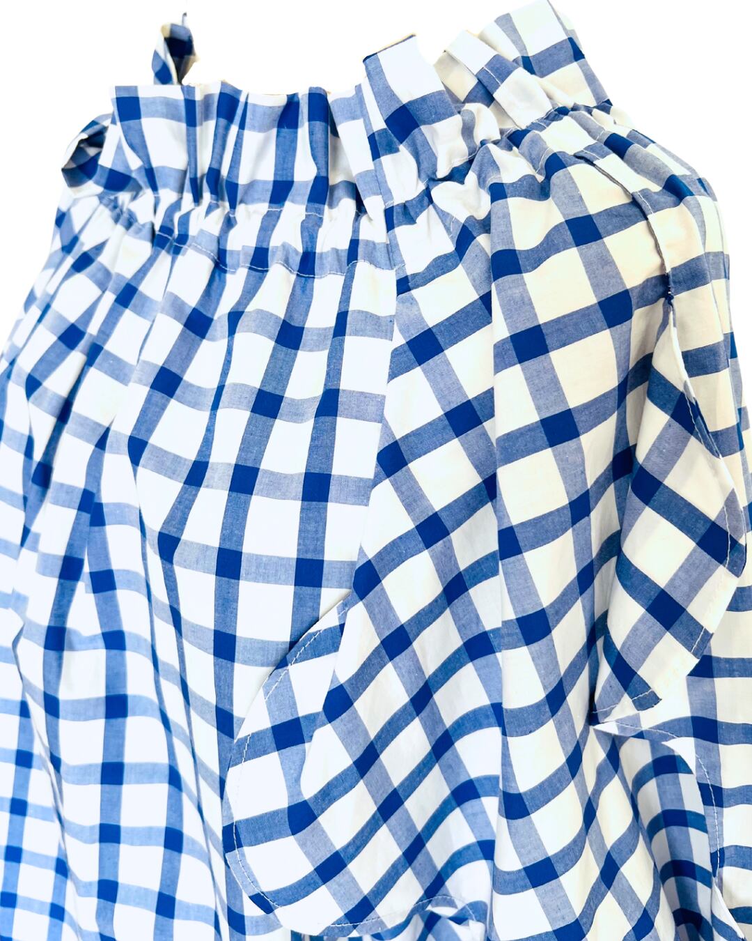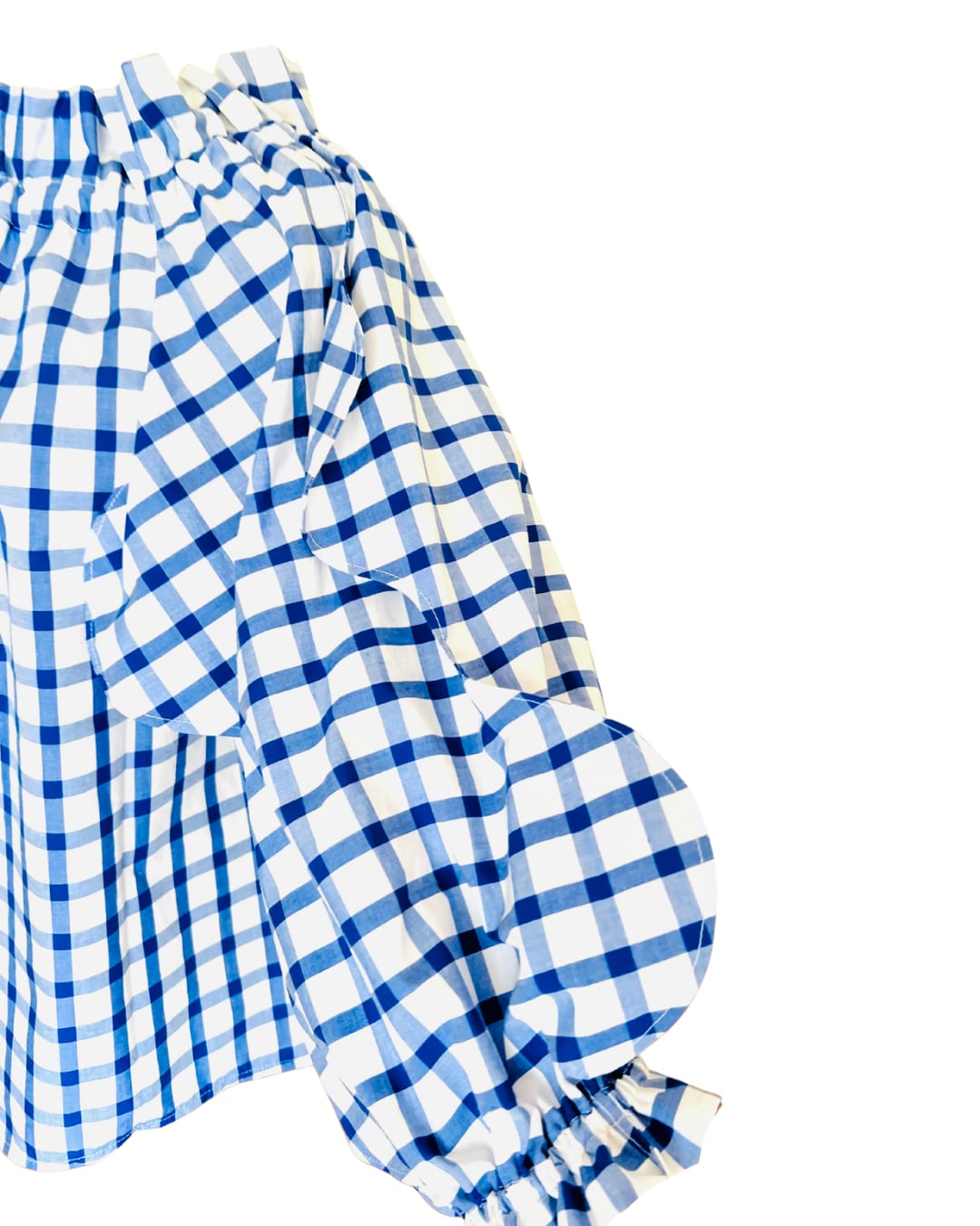 花びらブラウス/ ブルーのギンガムチェック/再販可