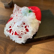 中央に盛った赤のドットレースで優しい軽やかなイメージにお造りしました。