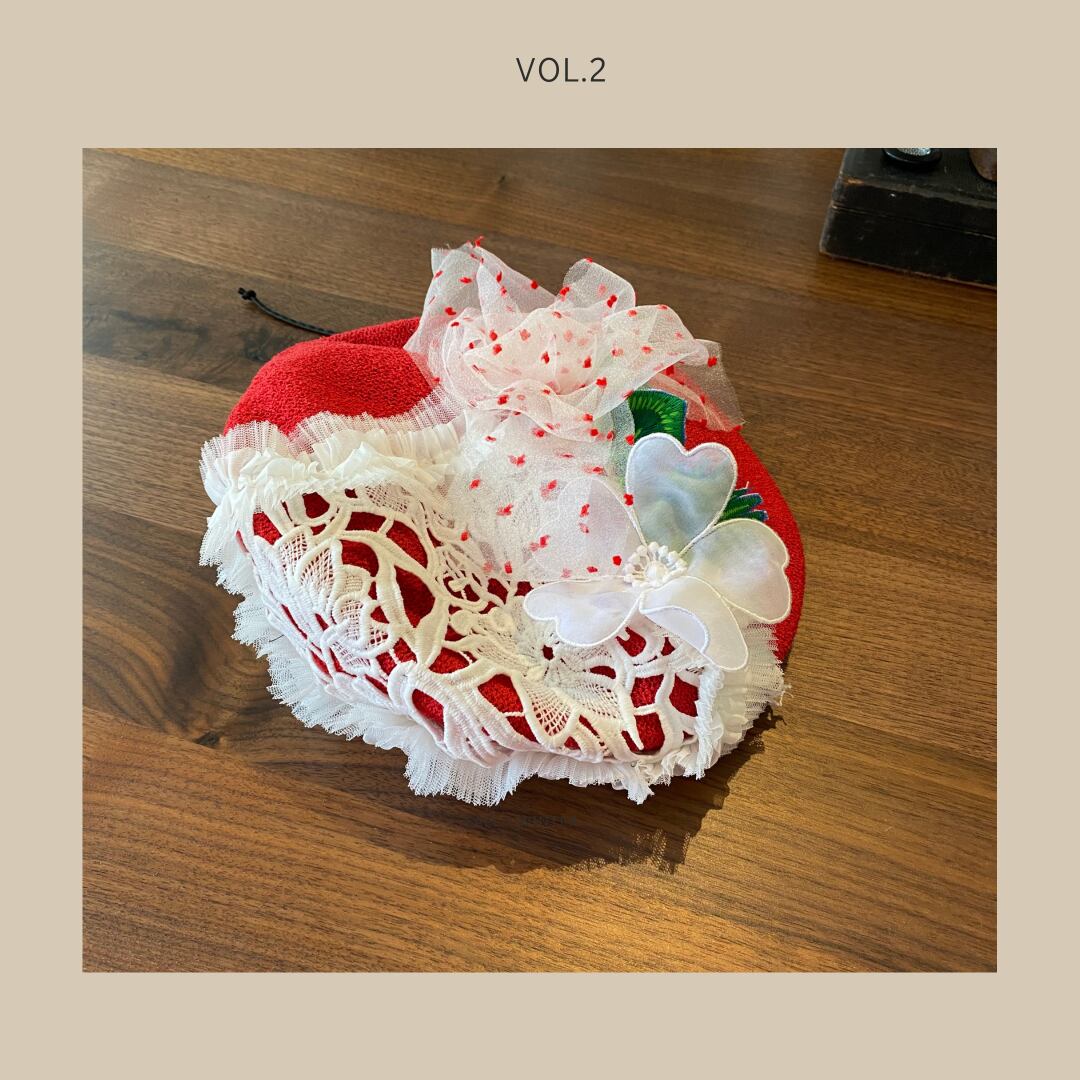 白のお花レースのふちに今度は軽いロマンティックなレースのドレープでダブルでぐるっと囲みセットした時にアシンメトリー感が良くスタイリングしやすくなっています。