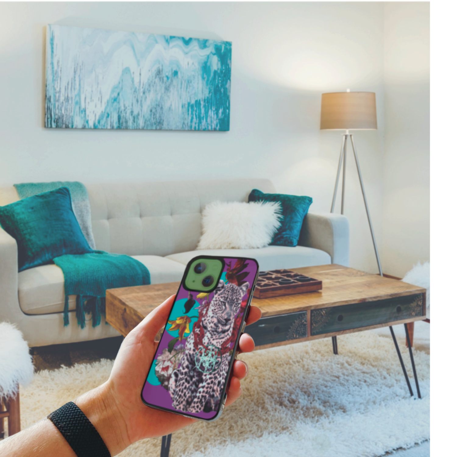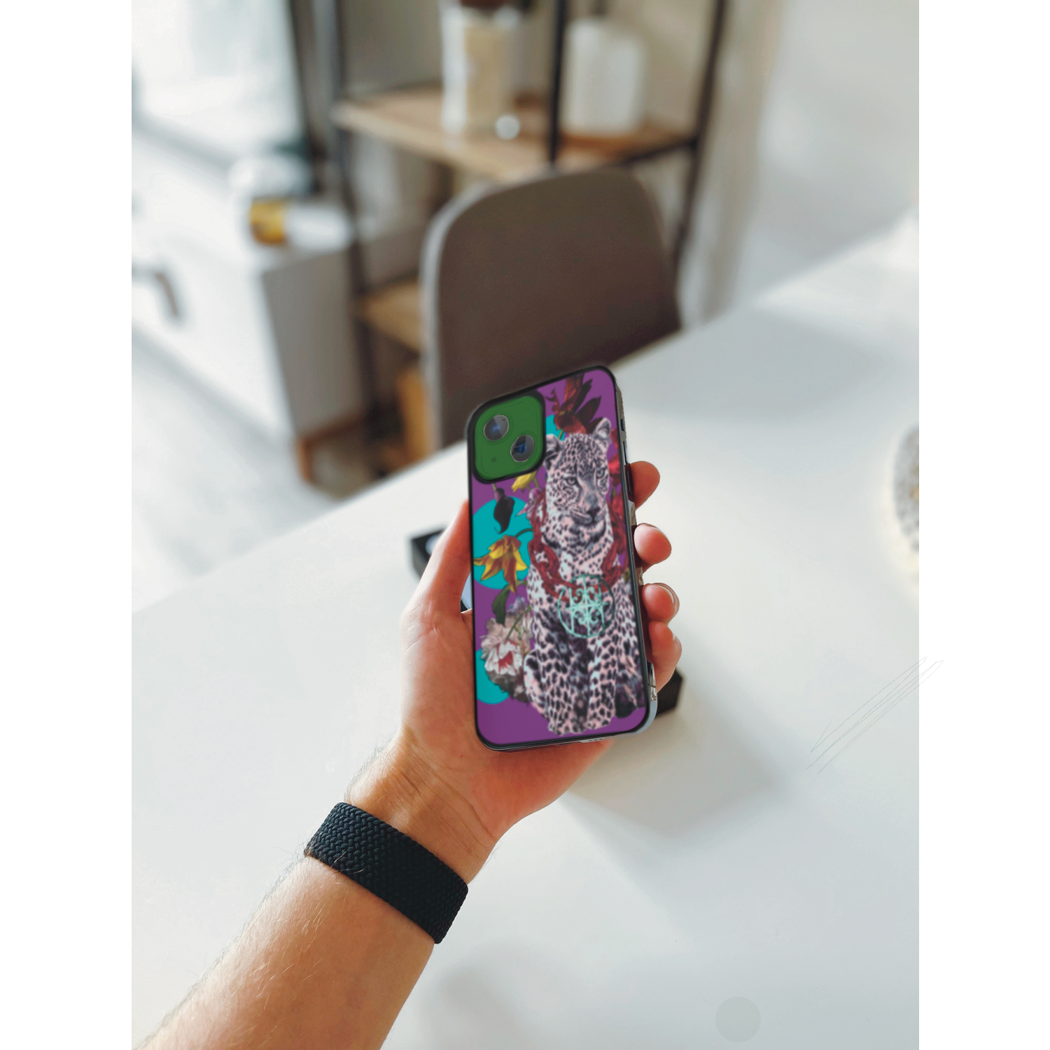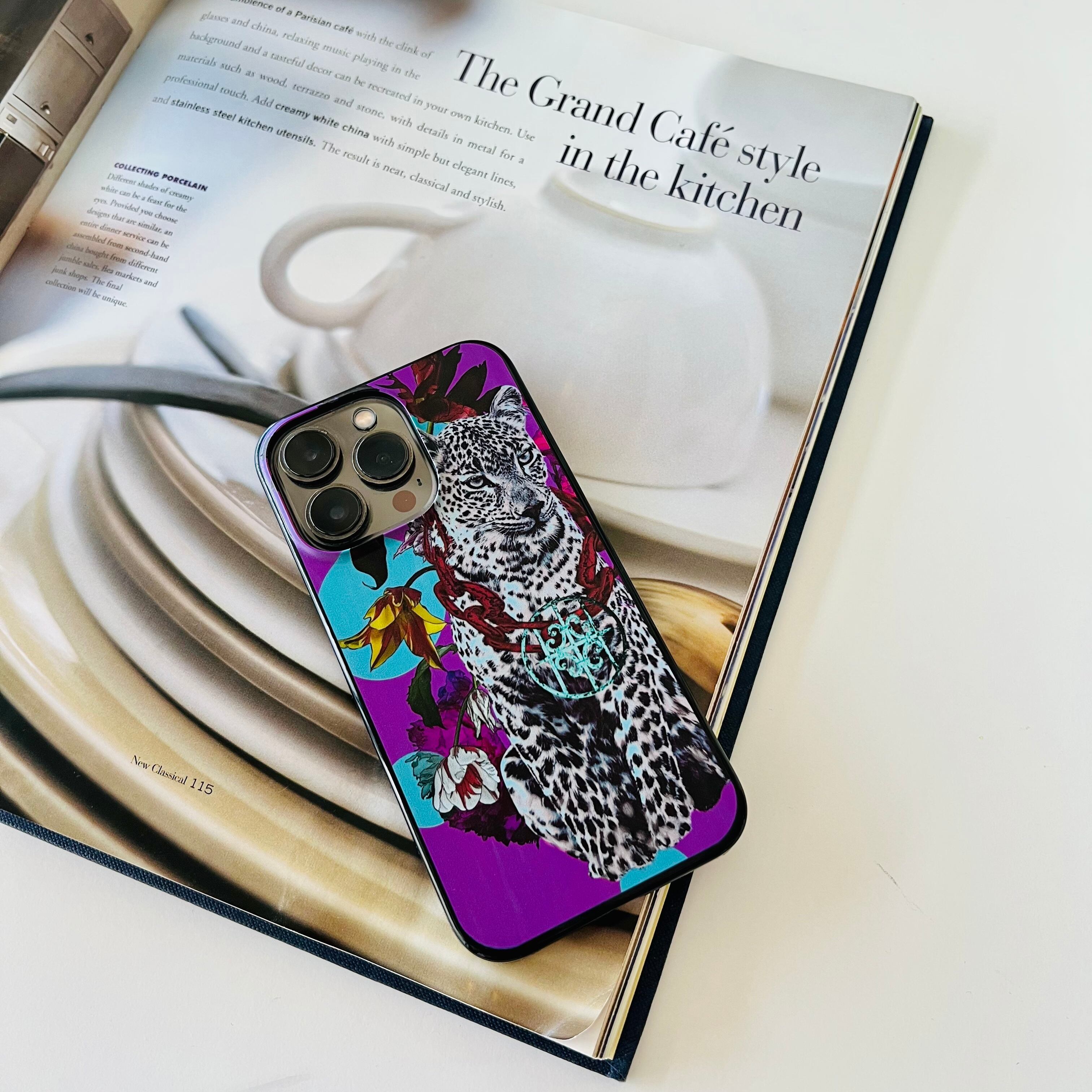 カラフルなお花に囲まれたピンク色のレオパードです。