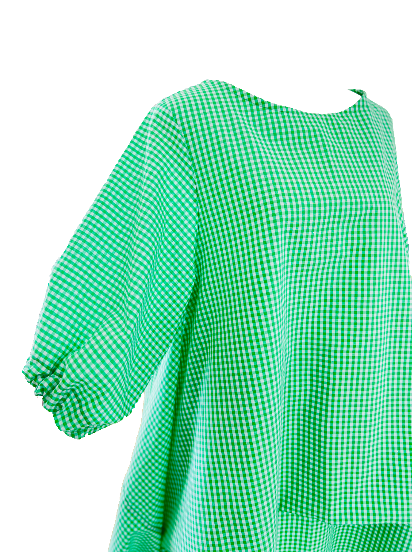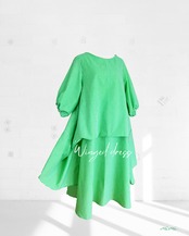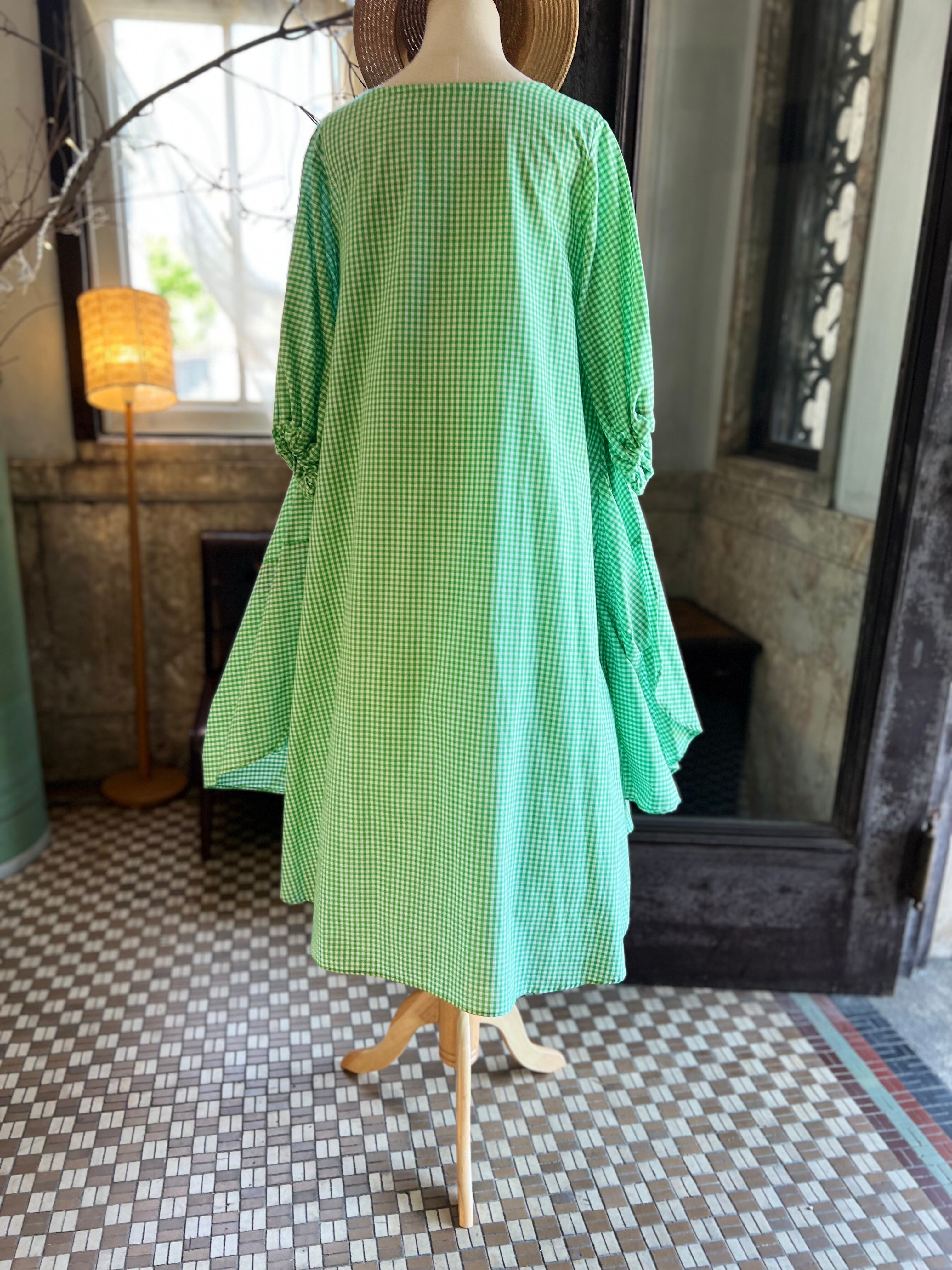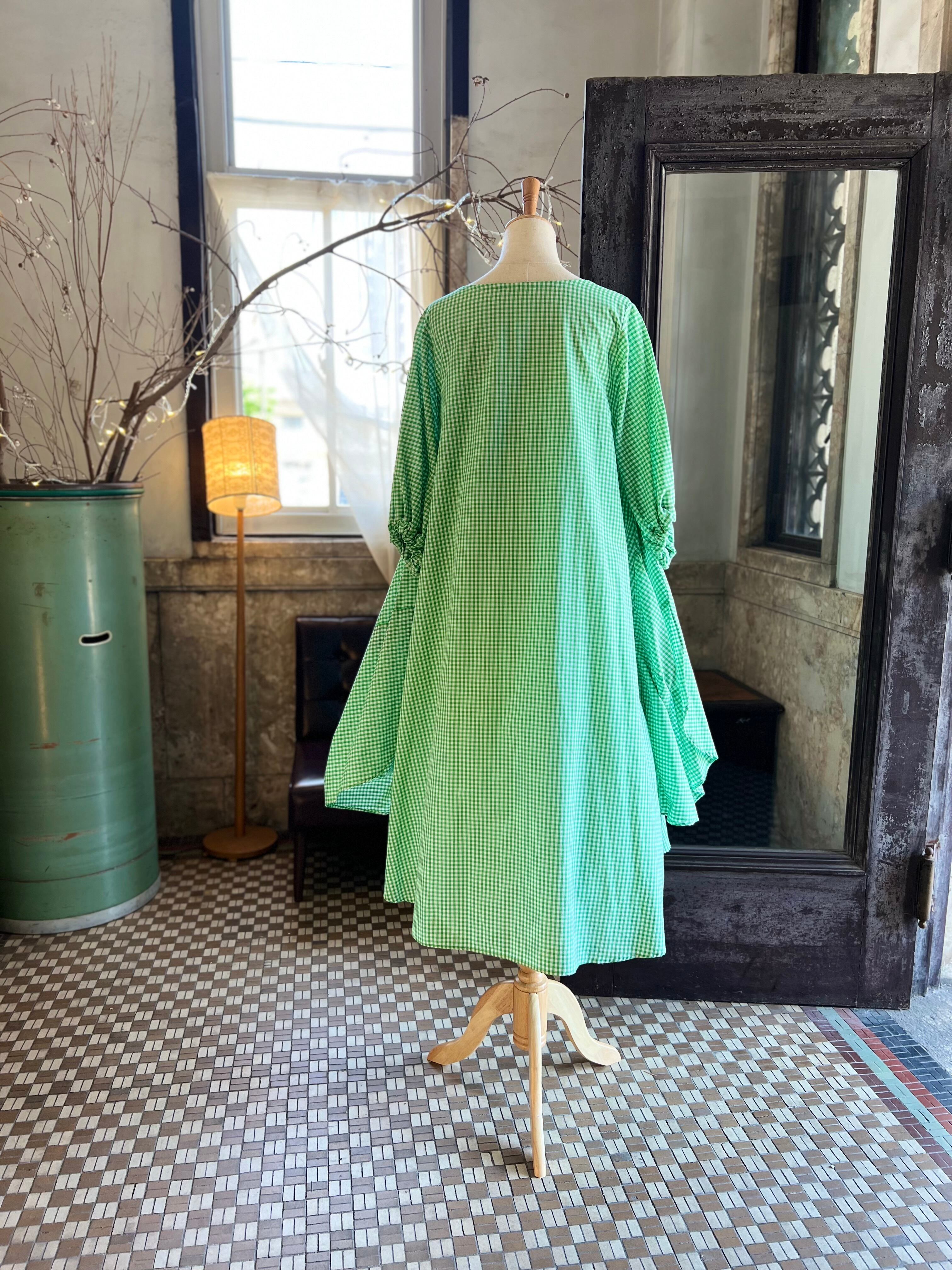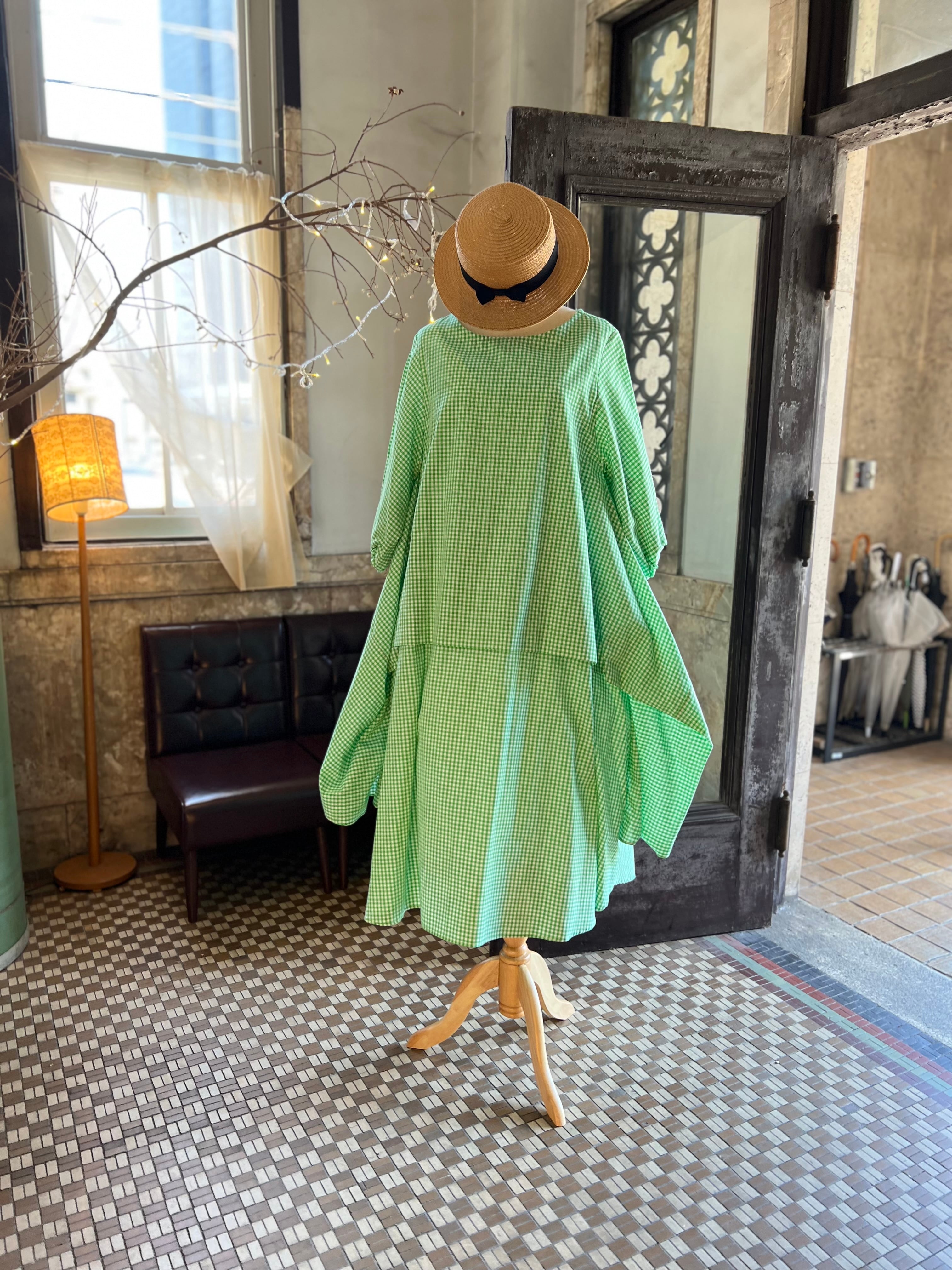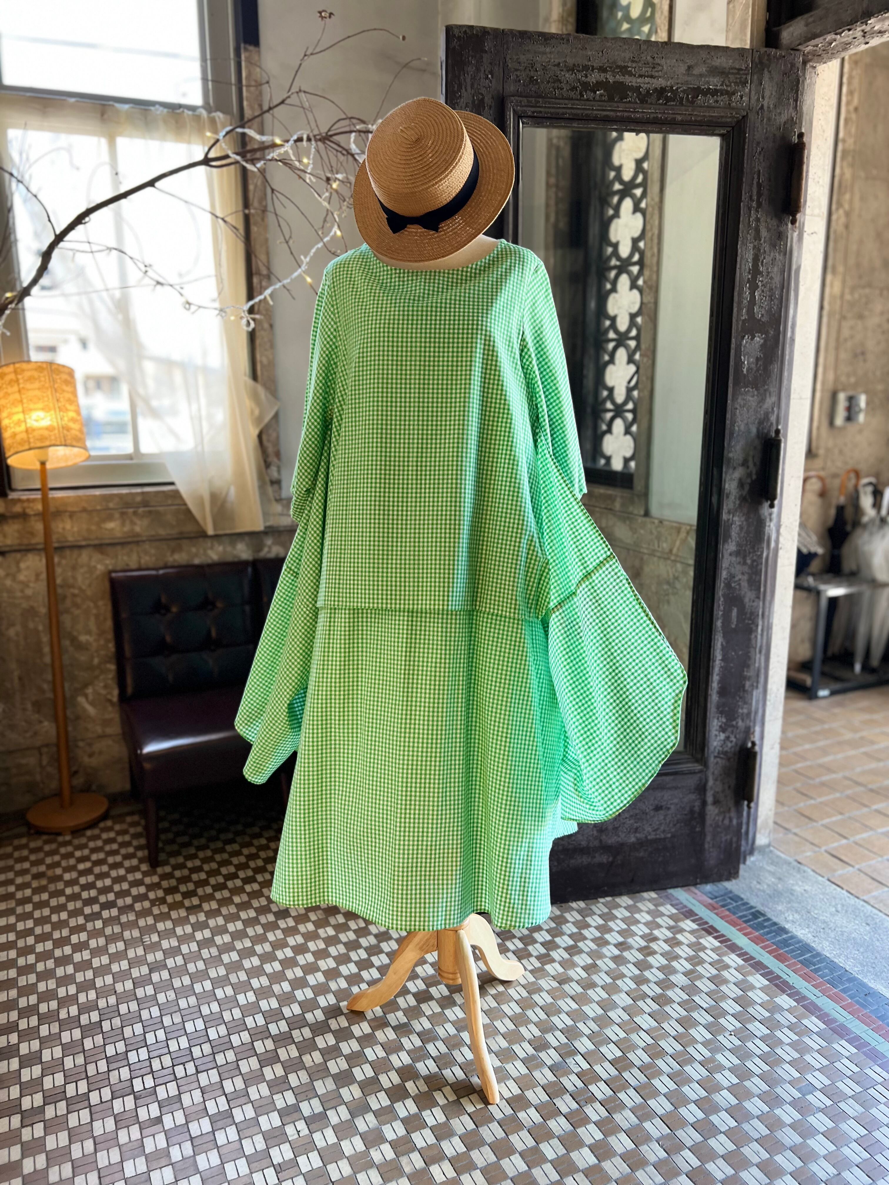 Winged-dress / グリーンギンガムチェック / ゆったりガーリーワンピース