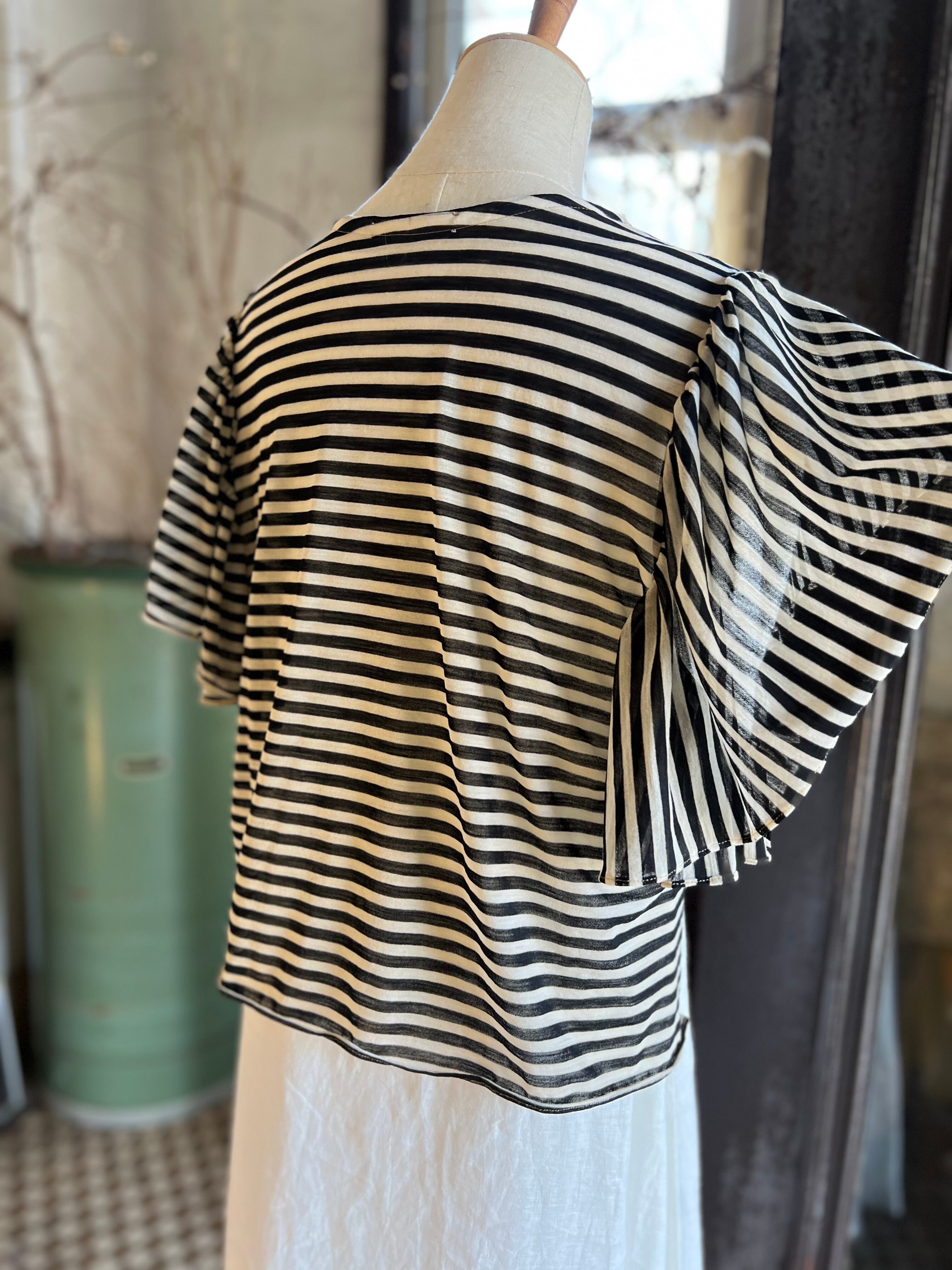 さりげない個性をアピールしたい方へオススメの一枚です。カジュアルなスタイリングにも、きれいめなコーディネートにもマッチし、さまざまなシーンで活躍します。おしゃれを楽しみながら、自分らしさを表現してみませんか?ぜひ、このストライプアシンメトリートップスで素敵なスタイルを演出してみてください。